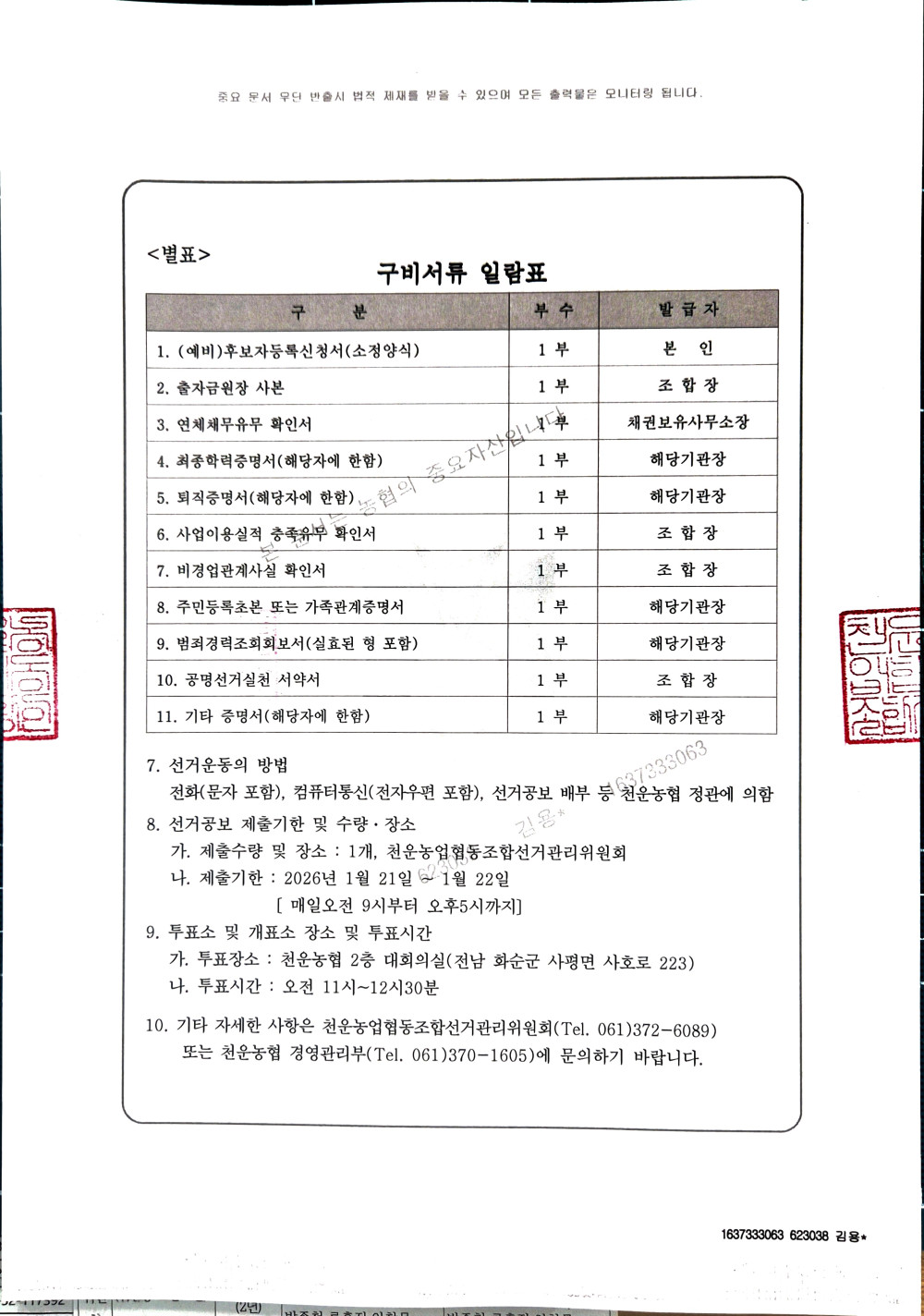 비상임감사 선거공고